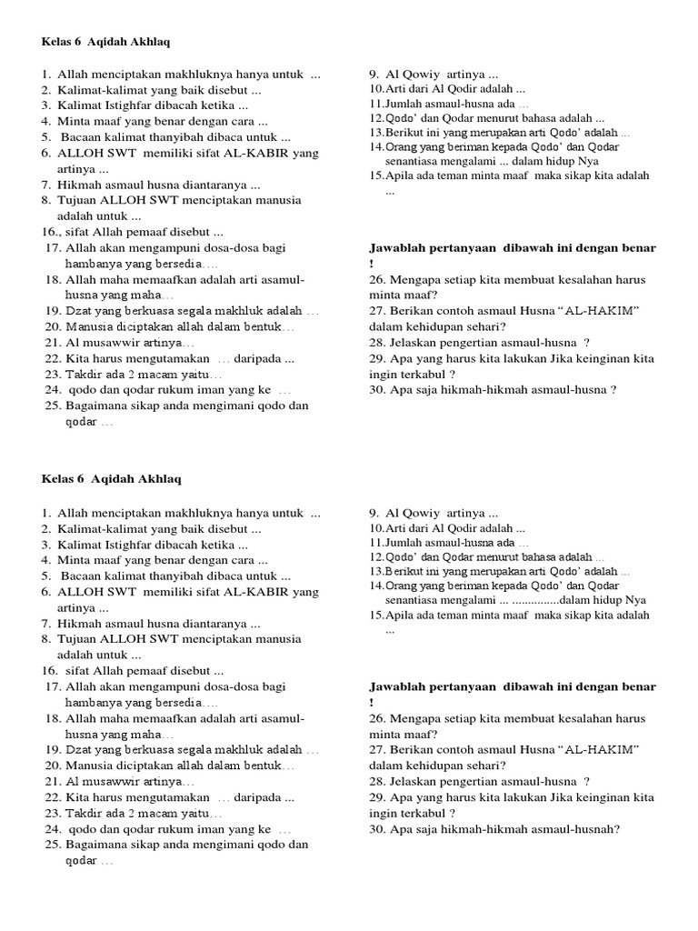 - selalu memuji nama Allah memakai Asmaul Husna.